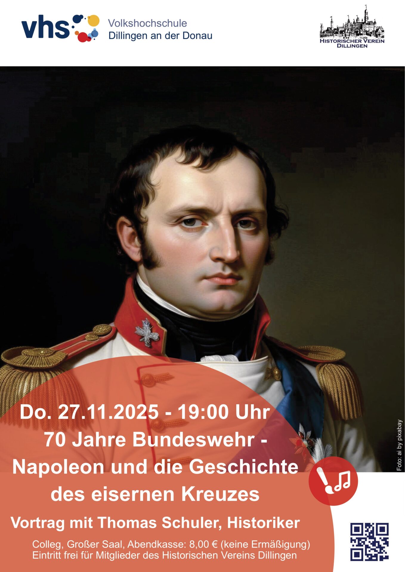 Das Eiserne Kreuz ist seit Gründung der Bundeswehr im Jahr 1955 das offizielle Hoheitsabzeichen der Streitkräfte der Bundesrepublik Deutschland. Es ist sowohl auf dem Brandenburger Tor als auch auf den drei Regierungsflugzeugen der Bundesregierung zu sehen. Durch die spannende Geschichte dieses Symbols, das seinen historischen Ursprung eindeutig im „Befreiungskrieg“ gegen Napoleon hat, wird Sie an diesem Abend Thomas Schuler, einer der führenden Napoleon-Experten Deutschlands führen. Ein Vortrag über Identität, Erinnerungskultur und politische Zeichen.